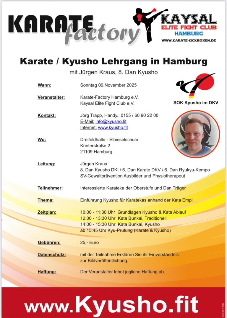 9. November 2025 @ 10:00 - 15:30 Karate und Kyusho-Jitsu Lehrgang und Kyuprüfung mit Jürgen Kraus in Hamburg Kaysal Elite fight Club Hamburg Krieterstraße 2, Hamburg €25